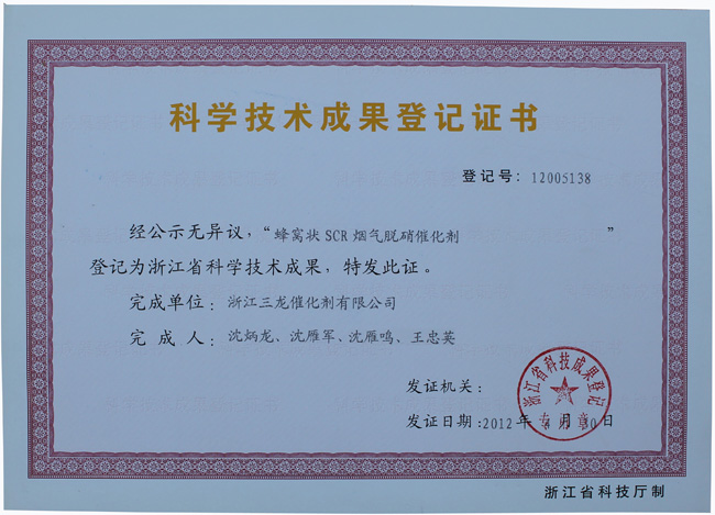 科技成果登記證書